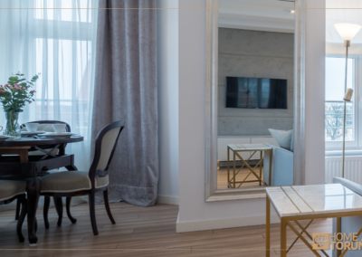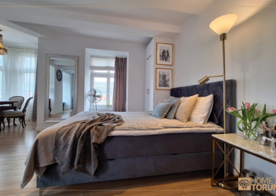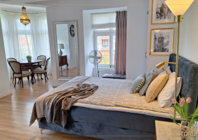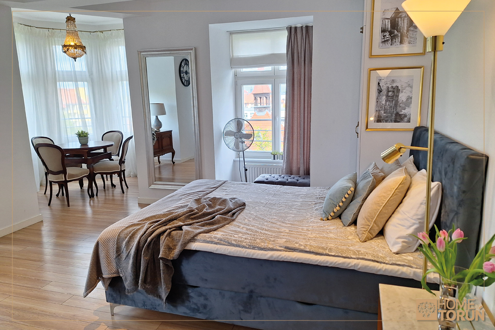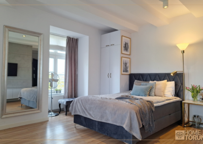 Apartament  został przeznaczony na wynajem krótkoterminowy, znajduje się odrestaurowanej kamienicy z windą. Z okien roztacza się przepiękny widok na dach zabytkowej dzielnicy Bydgoskie Przedmieście.