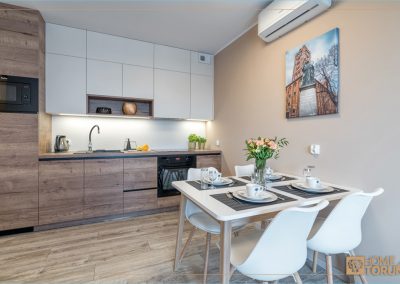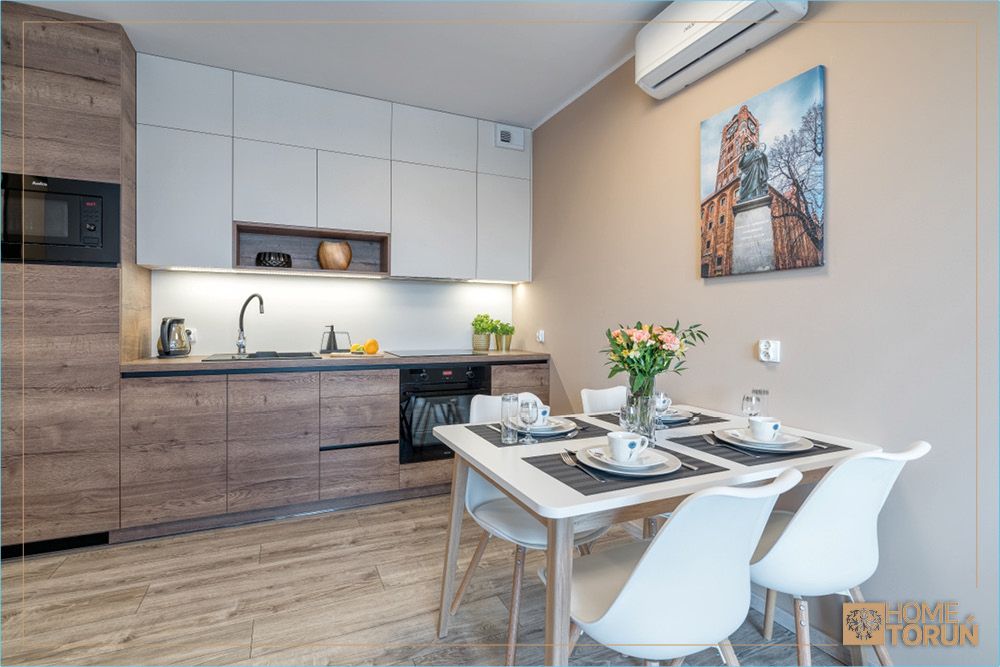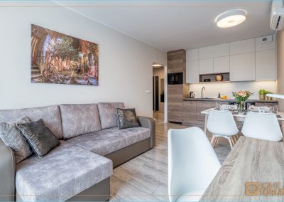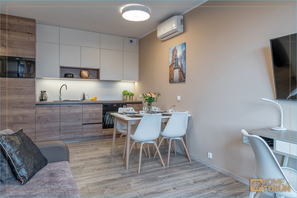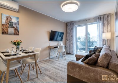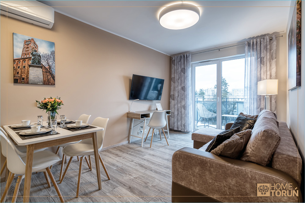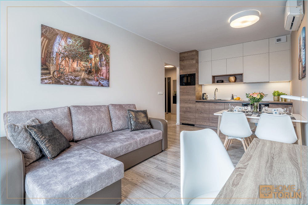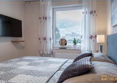 Nowocześnie urządzony apartament na wynajem zachwyca swą przestronnością. To 45m mieszkania z dużym i wygodnym łóżkiem w sypialni oraz balkonem z widokiem na dachy miasta jest chętnie wynajmowane przez gości.