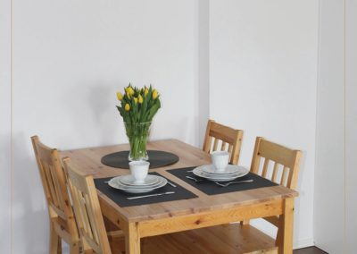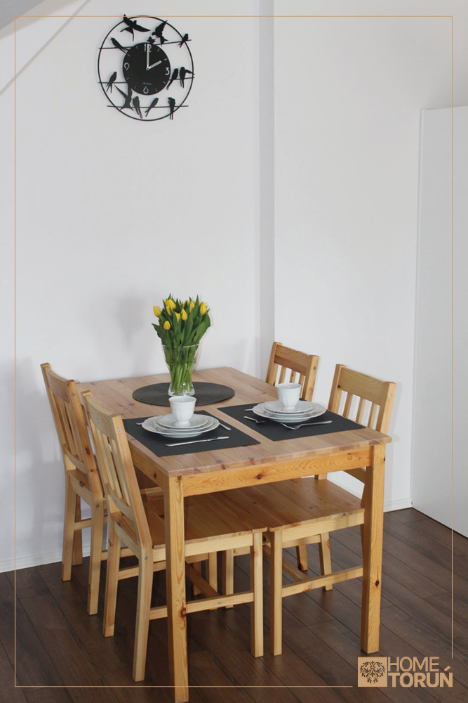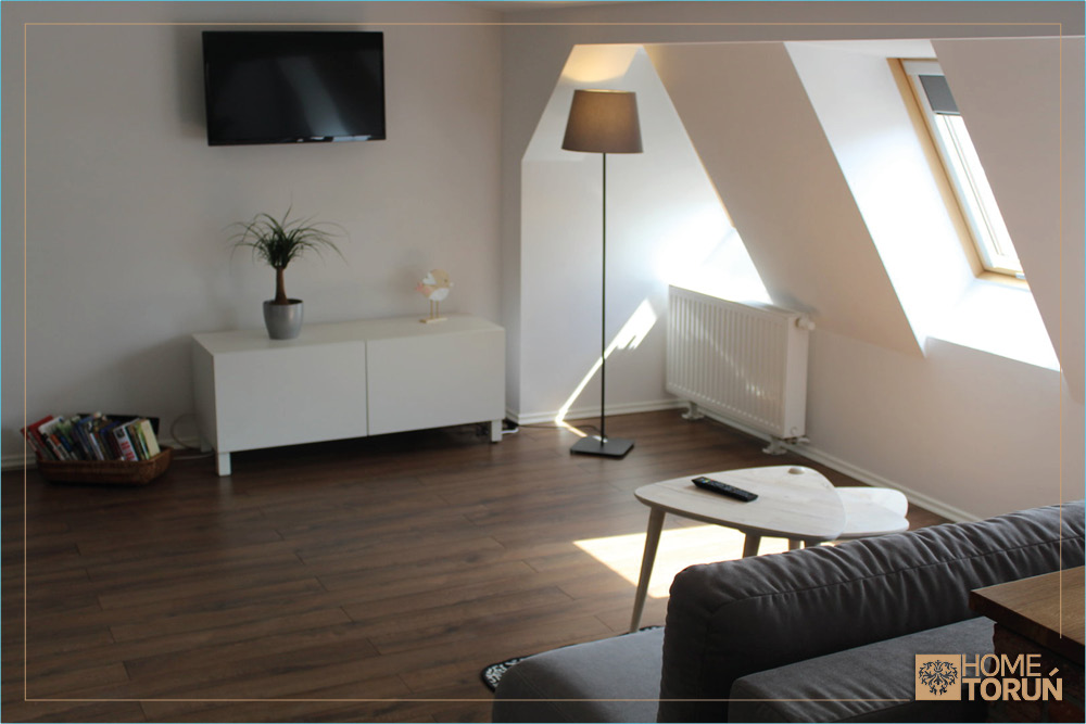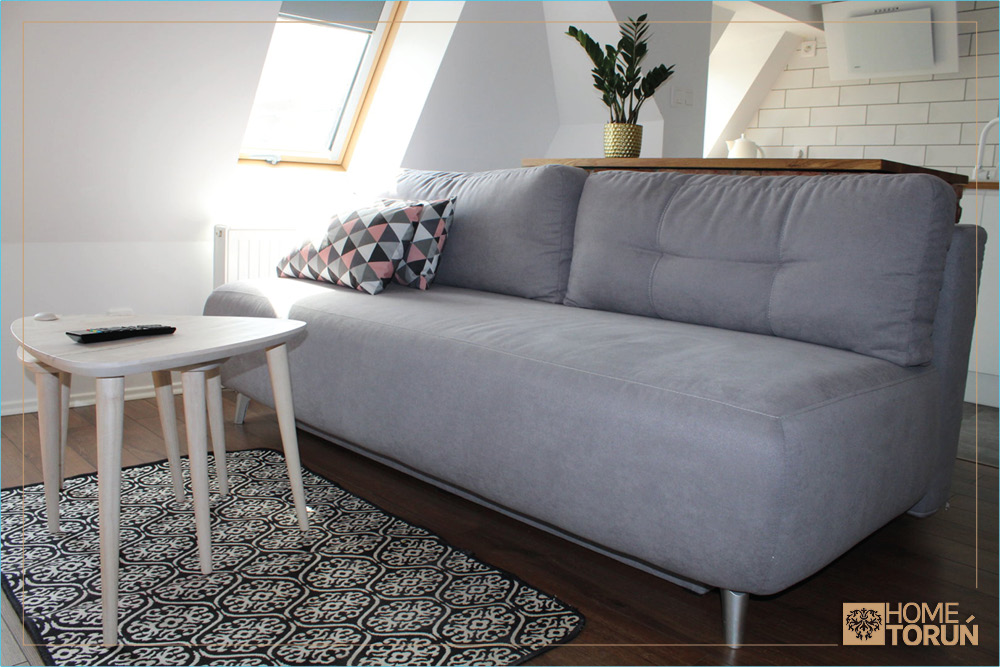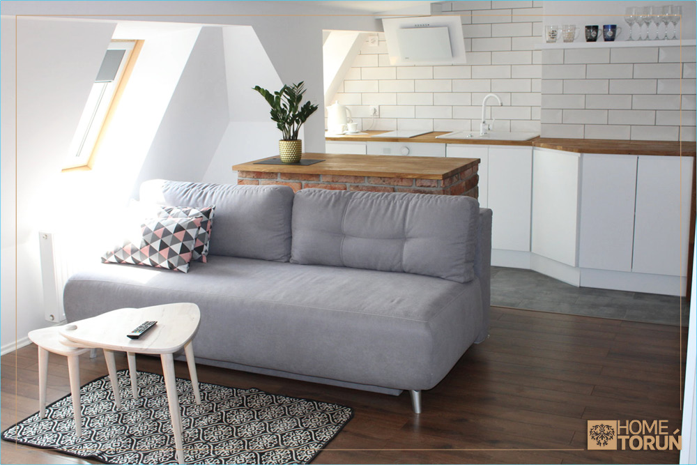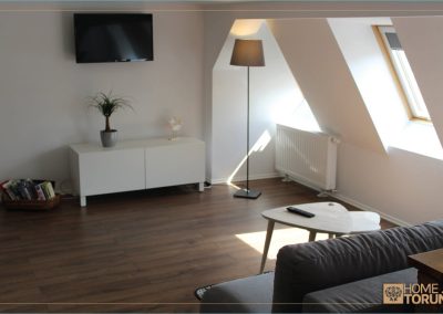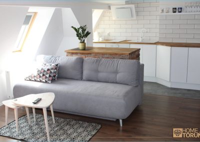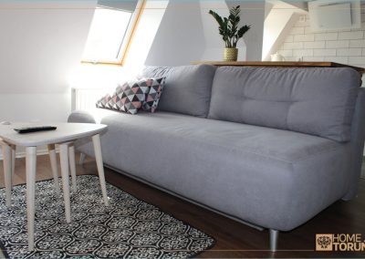 30 metrowy salon z aneksem kuchennym, rozkładaną kanapą, częścią jadalnianą i komfortowo wydzieloną sypialnią pozwoli Państwu na spędzenie miłych chwil w naszym piernikowym mieście.