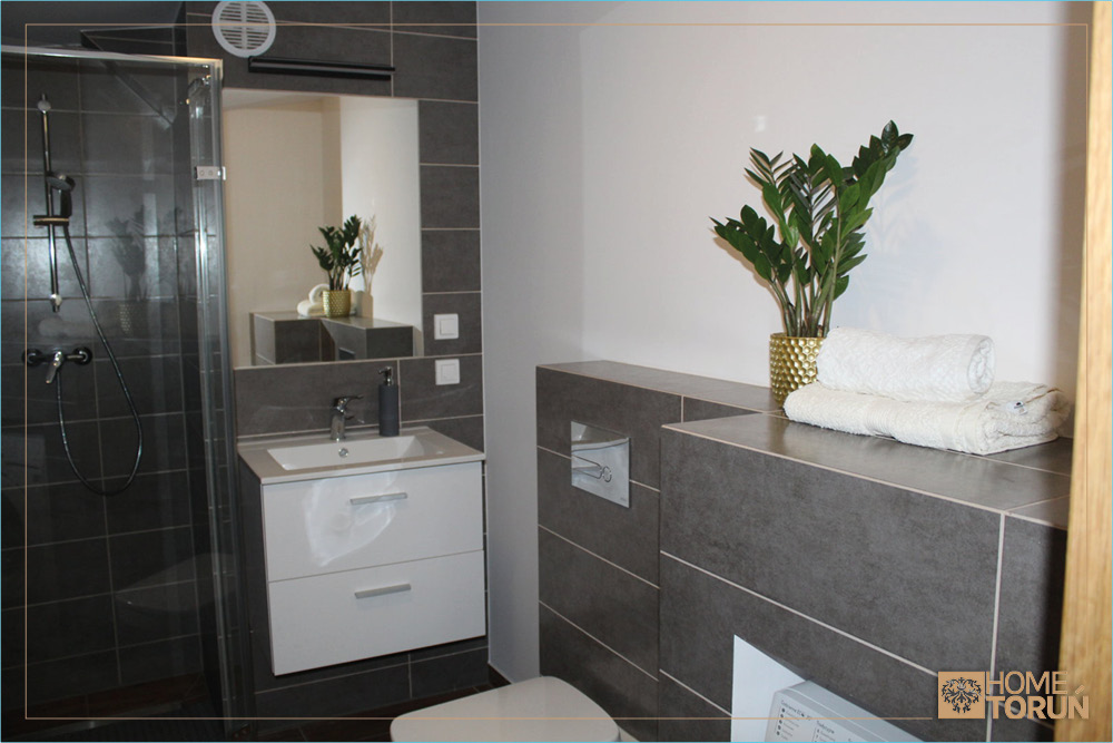 Ponadto w mieszkaniu czeka na Państwa duża łazienka z komfortowym prysznicem.