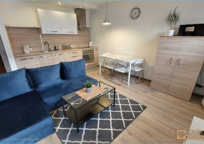 Apartament Uno zlokalizowany jest  w pobliżu Uniwersytetu Mikołaja Kopernika oraz stadionu żużlowego.  Znajduje się  w nowo oddanym bloku z windą, przynależy do niego miejsce parkingowe w hali garażowej.